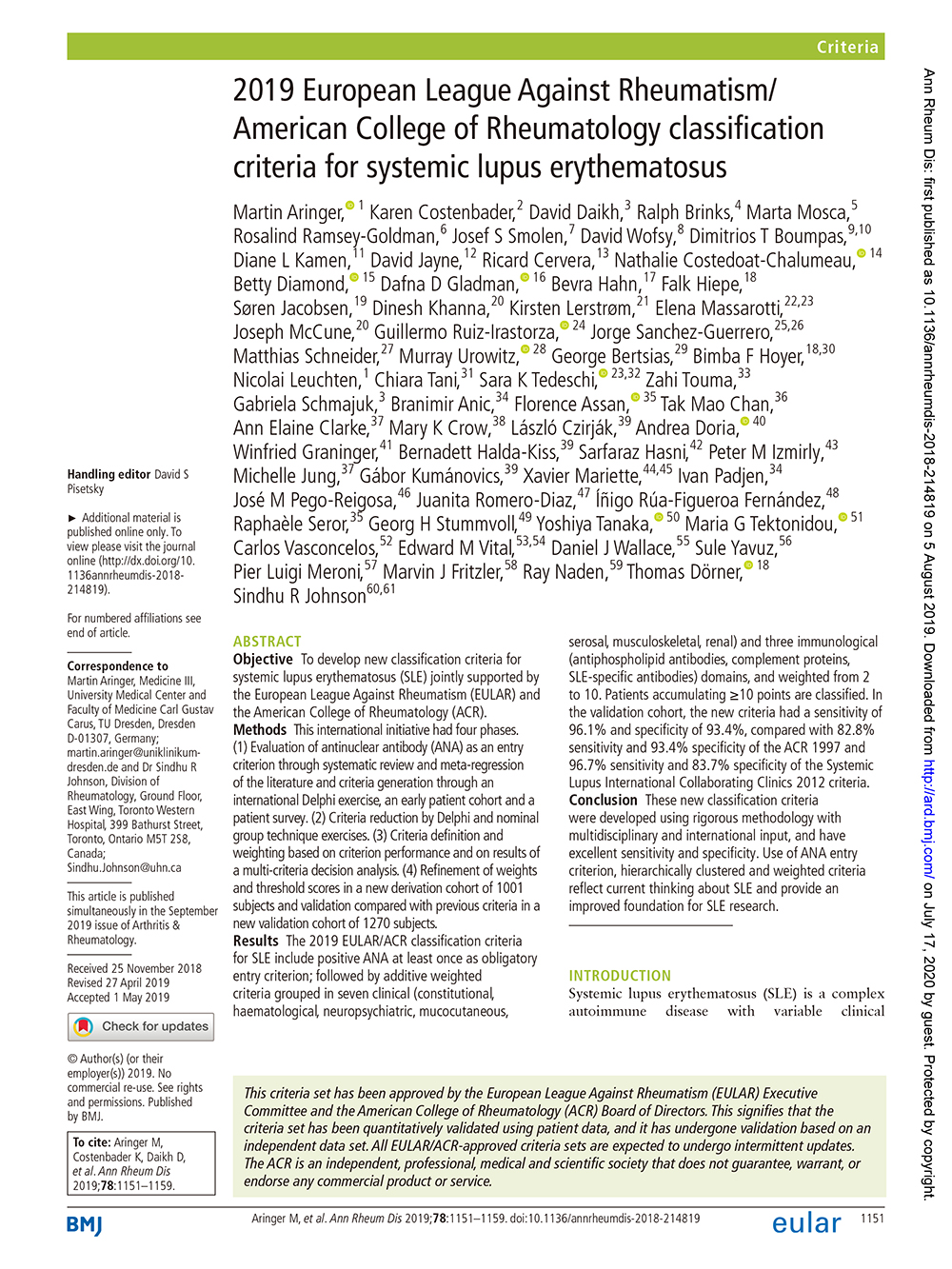 2019EULAR&ACR classification criteria for SLE