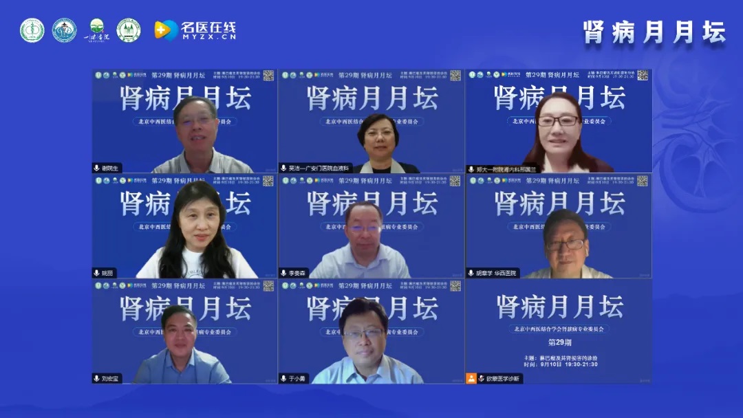 2024年9月10日,由北京中西醫(yī)結合學會腎臟病專業(yè)委員會舉辦的《腎病月月壇(第29期)——淋巴瘤及其腎損害的診治》于線上成功舉行。本次論壇由北京中西醫(yī)結合學會腎臟病專業(yè)委員會主任委員、北京中西醫(yī)結合腎臟疑難病會診中心主任、北京大學航天中心醫(yī)院腎內(nèi)科主任醫(yī)師特聘教授、解放軍總醫(yī)院及南開大學醫(yī)學院博士生導師謝院生教授擔任大會主席,中國中醫(yī)科學院廣安門醫(yī)院吳潔教授、鄭州大學第一附屬醫(yī)院邢國蘭教授作為講課嘉賓,中國醫(yī)科大學附屬第一醫(yī)院姚麗教授、四川省人民醫(yī)院李貴森教授、四川大學華西醫(yī)院胡章學教授、空軍軍醫(yī)大學第二附屬醫(yī)院(唐都醫(yī)院)劉宏寶教授以及陜西省中醫(yī)醫(yī)院于小勇教授作為本次大會的討論嘉賓。