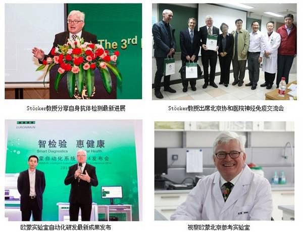 3月21日,St?cker教授出席第三屆全國自身免疫試驗(yàn)診斷高峰論壇,并分享了神經(jīng)系統(tǒng)自身抗體檢測技術(shù)進(jìn)展以及抗體指標(biāo)的臨床診斷策略,同時(shí)為中國客戶帶來了最新實(shí)驗(yàn)室自動化的研發(fā)成果。其中有同時(shí)支持熒光、免疫印跡、酶聯(lián)免疫,三種方法學(xué)的移液操作的樣本前處理平臺——EUROLabLiquidHandler,間接免疫熒光全自動核型及滴度判讀系統(tǒng)——EUROPattern,以及全自動免疫印跡檢測系統(tǒng)——EUROBlotOne,這些新產(chǎn)品的問世,將為國內(nèi)實(shí)驗(yàn)室建立更為高效、準(zhǔn)確的自動化檢測系統(tǒng)。