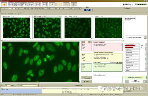 目前,EUROPattern的判讀軟件可以實(shí)現(xiàn)HEp-2/ HEp-2010熒光核型與滴度的判讀,并可對組織片拍攝高清圖片進(jìn)行保存,可滿足大部分醫(yī)院的檢測要求。隨著核型算法的不斷成熟,以及產(chǎn)品涵蓋面的不斷擴(kuò)大(例如判讀ANCA、dsDNA等),期待在不久的將來,EUROPattern會(huì)有更加出色的表現(xiàn)。
