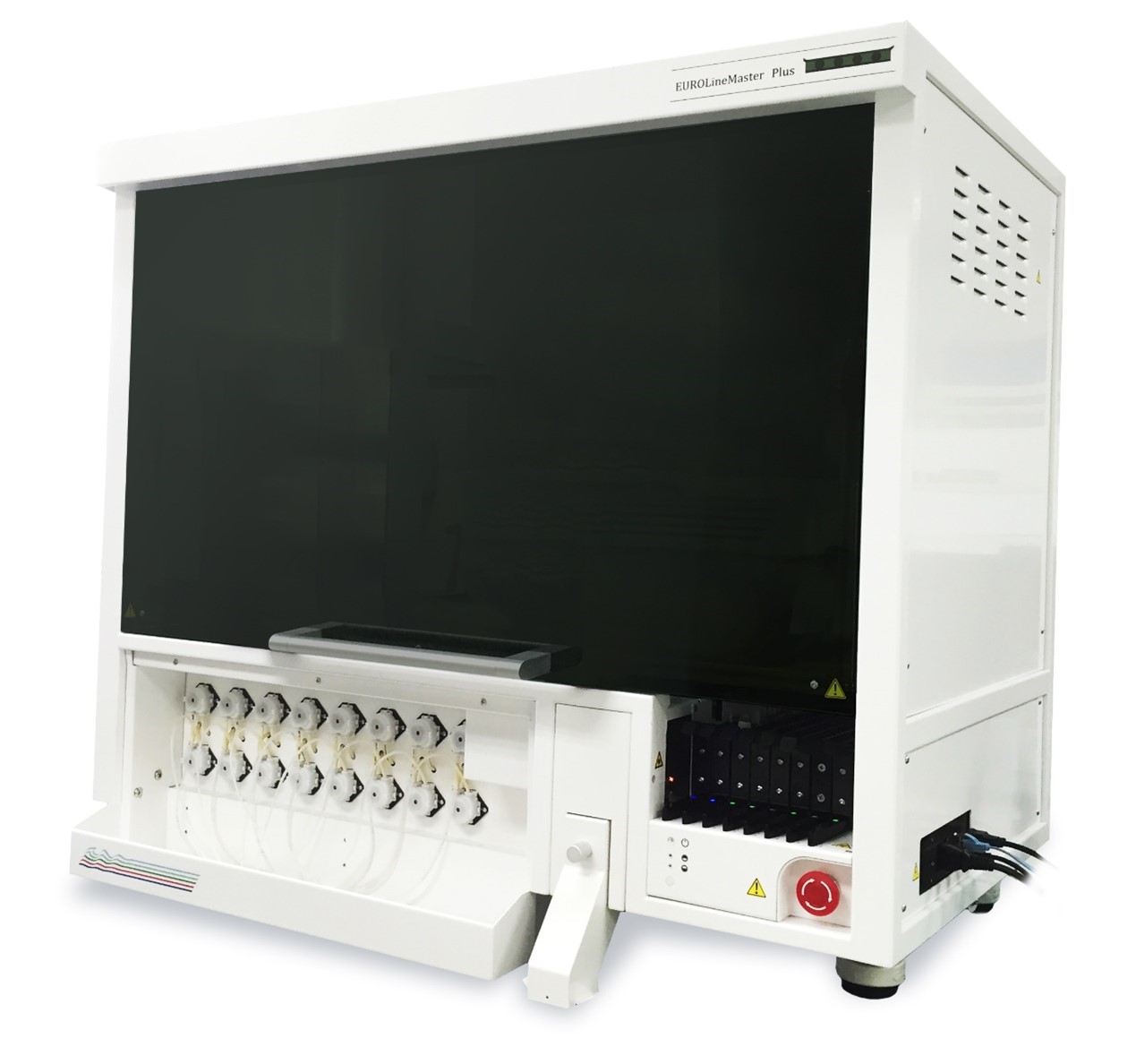 EUROLineMaster Plus-A全自動免疫印跡檢測系統采用歐蒙最新的高通量多參數免疫檢測技術,是目前使用更先進、應用更成熟的一個多指標檢測技術平臺。儀器具備16個試劑通道,可在一次檢測運行中,組合自身免疫、過敏原和感染診斷領域的檢測。可實現從加樣到結果輸出的全自動操作及全流程管理,實現從樣本識別、樣本稀釋、所有孵育及清洗過程,到自動成像、圖像分析與處理的全自動操作,最終出具可自定義的檢測報告,可真正實現無人值守。